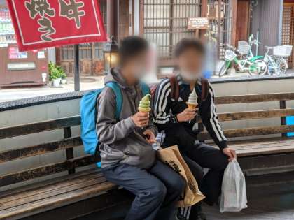 高山市内散策の様子です。お土産を買ったり、食べ歩きをしたり、古い町並みを感じながら過ごしました。
