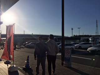 草津パーキングエリアを16時15分に出ます。ここから約1時間ほとですので、予定より早く、17時15分ぐらいに学校に着く予定です。