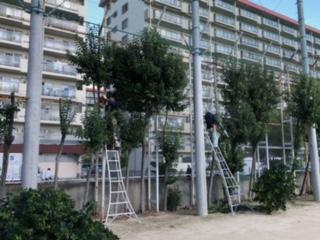 11月9〜12日の4日間、校園営繕園芸事務所(園芸班)から来ていただき、剪定・整枝・伐採などの作業を本校管理作業員とともに実施しています。