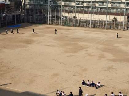 2年生の授業の様子です。感染対策をとりながら、体育の授業を行っています。