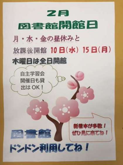 2月 図書館 開館日