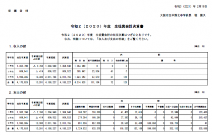 3年生 令和2(2020)年度 学校徴収金(生徒費会計)決算報告について