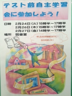 3月2日(月)3日(火)に実施します。自主学習会や家庭学習に取り組みましょう。