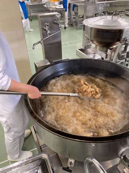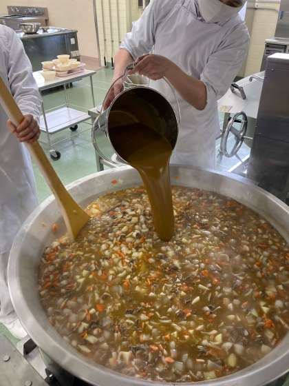 今日は人気メニューのカレーです!そして給食のお楽しみにラッキー人参を学級に入れました!花型のラッキー人参あった人!とクラスで聞くと何人か手を挙げて答えてくれた人がいました^_^