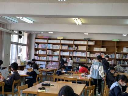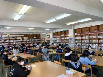 一年生の図書館オリエンテーションが行われました。図書館補助員の葛井先生から利用方法について説明を受けました。早速、休み時間に図書館を利用している生徒がいました。これからたくさんの本を読んで思考力や表現力を身につけて欲しいです