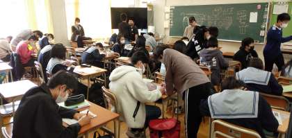 今日も通常授業が行われました。休み時間には、3年生らしく自習する生徒が多く見られます。友達と談笑する姿も学校があればこそ見られる光景です。