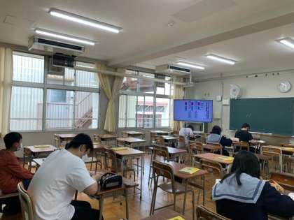 午前中3時間の家庭学習を継続しています。you tube動画を家庭で見ることが出来ない生徒は、今日も学校で動画を配信しています。今日の動画は、1年生国語「文法」です。口語文法の入門編です。登校した生徒は一生懸命取り組んでいます。