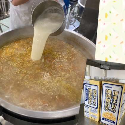 豆乳を使うことでまろやかなクリームスープのような味つけになりました。豆乳は煮詰めすぎると豆腐のようなダマになるので弱火でじっくり煮込みました。
