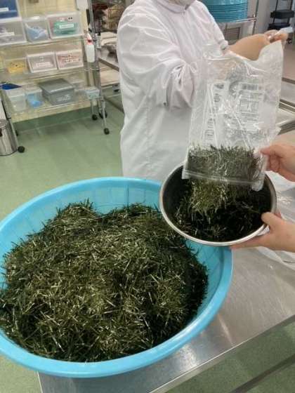 給食では刻みのり、干し椎茸を使用して作ります。発祥地は大阪市西淀川区佃です。