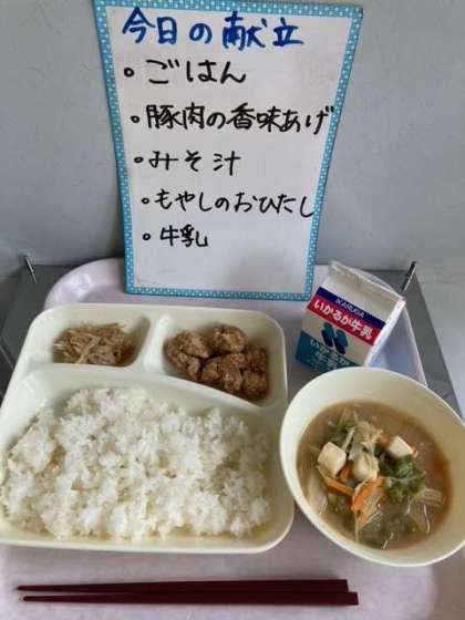 今日は七夕です。星型に見えるようにオクラが入ったみそ汁が登場しました。これからオクラを使った料理がいくつか登場します。