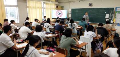 今日から3年生は平和学習に入りました。これから戦争の愚かさや悲惨さを学んで平和について考えていきます。今年度のテーマは「六千人の命のビザ、杉原千畝の決断」です。今日は背景にあるナチスドイツとホロコーストについて学びました。1、2年生も特活の時間に同じ取り組みをして、8月6日の平和登校日に最後のまとめを行う予定です。