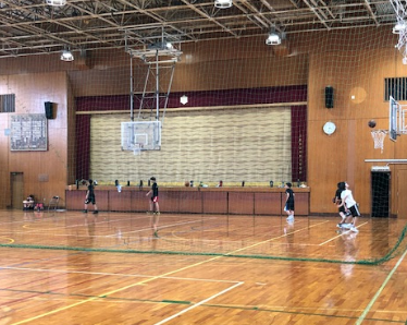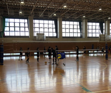 体育館では、男子バスケットボール部と女子バレーボール部が練習をしています。