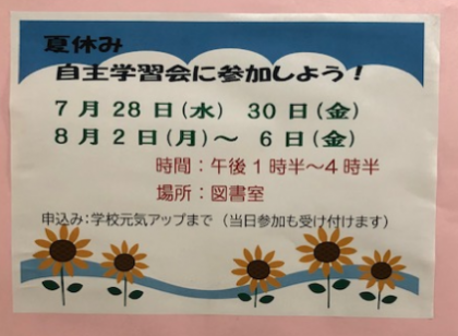 夏休みの宿題をするなど、時間がある人は、参加してくださいね。
