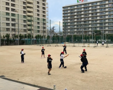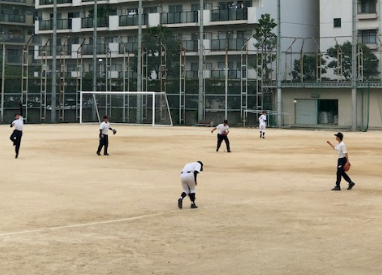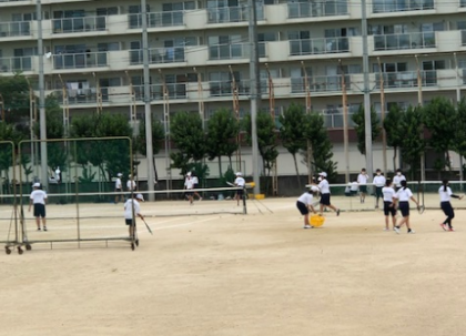 運動場では、テニス部、男女ソフトボール部か活動をしています。