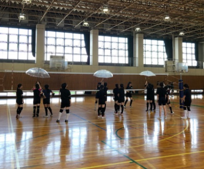 体育館では、男子バスケットボール部、女子バレーボール部が練習をしています。