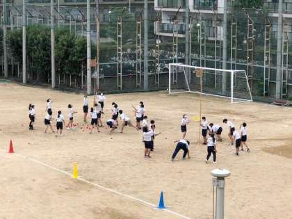 4時間目は、種目別に分かれてレース・コースの確認と団体種目の練習を行いました。