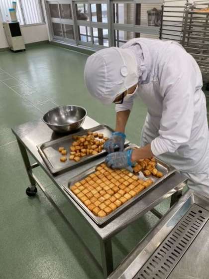 厚揚げは一つずつ丁寧に並べて焼いていきます。なかなか手間がかかる作業です。