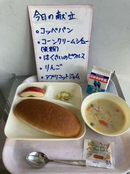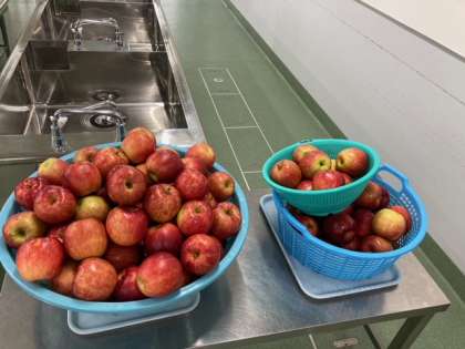 今日からりんごが登場しています。りんごは一つずつ丁寧に芯をとっていきます。