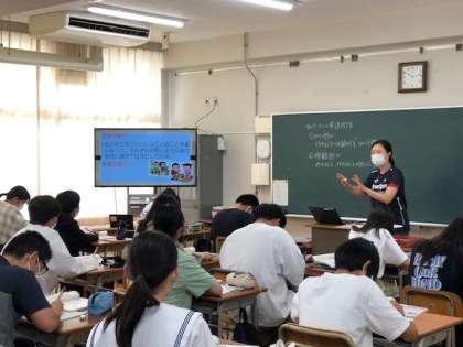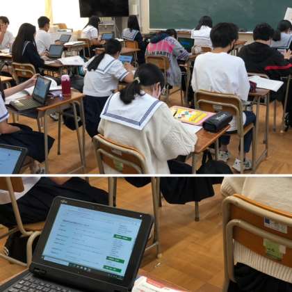 (学習者用端末を使って調べながら、紹介文を作っていきます。)
