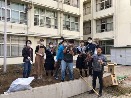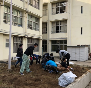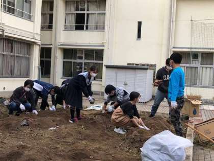 自主活動によって育てたサツマイモを生徒会で収穫しました。