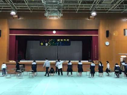 明日の文化祭舞台発表に向け、2年生が会場設営をしてくれました。