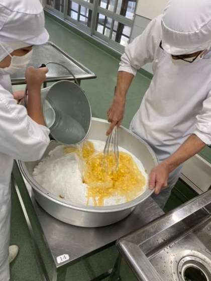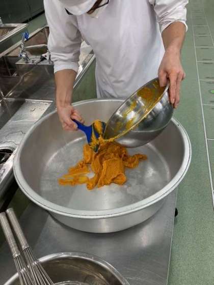 11/17給食 かぼちゃのういろう調理風景