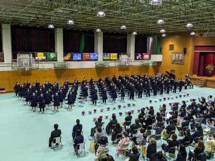卒業生が「手紙〜拝啓 十五の君へ」を歌いました。練習時間は短かったのですが、それを感じさせないハーモニーを聴かせてくれました。