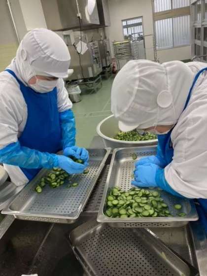 クリームソースは小麦粉と綿実油を色づかないように炒めてルウをつくりました。生徒に大変人気な献立です。
