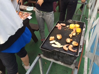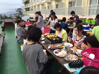17:45 夕食のバーベキュー!野外テラスで楽しくいただきました。