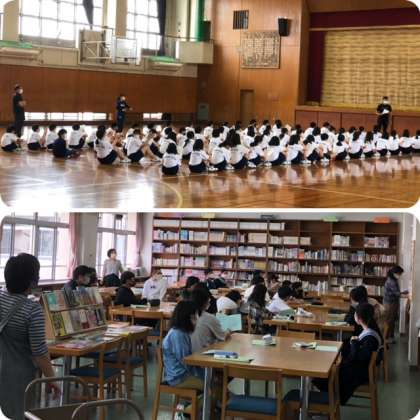 1年生は、学校司書の方から図書室の使い方や置いてある本についての説明を受けました。