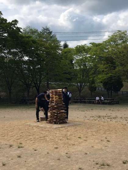 手の空いた人は、キャンプファイヤーの準備をしています。