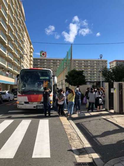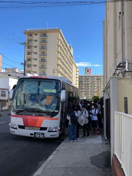 平野北中学校を出発しました。