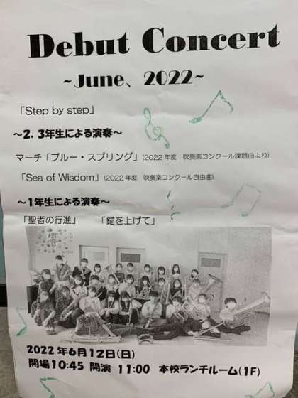 本日、吹奏楽部のデビューコンサートが開催されます。一年生にとって初めての演奏会です。