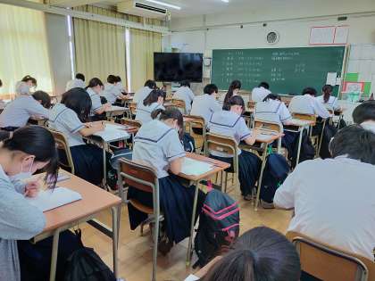 今日はチャレンジテストです。3限目、数学のテストに取り組んでいます。夏休みの勉強の成果がでますように・・・