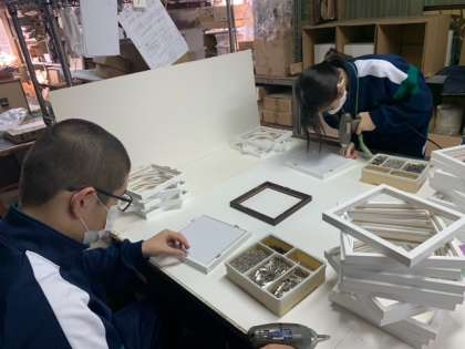 株式会社伸和様で、職場体験をさせていただきました。素敵なアートフレームを製造する仕事です。