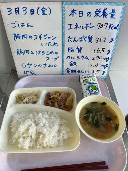 今日の給食では、じゃがいもでんぷんで作ったはるさめを使っています。