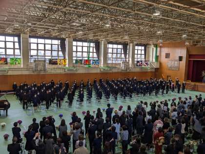 朝10時、予定通り卒業式が始まりました。今年は保護者の方々も複数来てもらうことができ、以前の形に近づいてきたように思います。