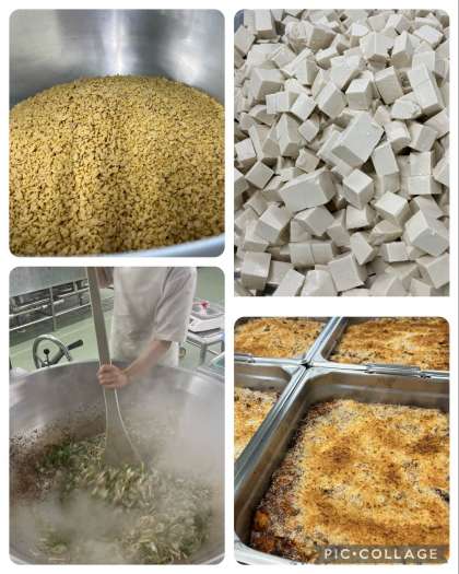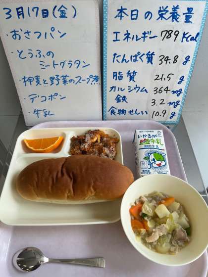 とうふ、牛ひき肉、ピーマン、玉ねぎ、大豆が入った体に良いグラタンです。