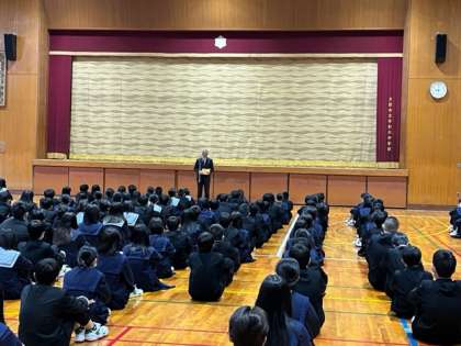 3年ぶりに体育館に全員が集まって始業式を行うことができました。
