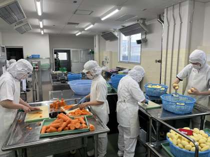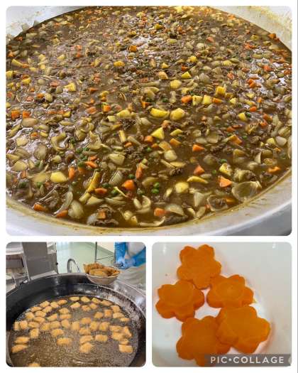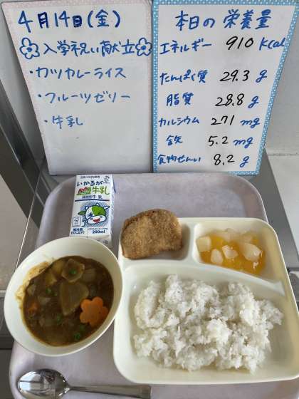 カツカレーのラッキーにんじんは、調理員さんが桜の形にしてくださいました。