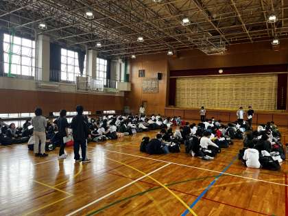 明日からの一泊移住に向けて、前日指導を行いました!荷物と行程の確認をして、1年生全員心も荷物も準備万端です!