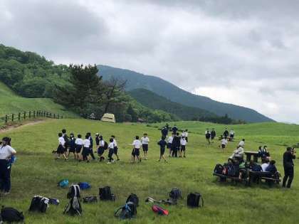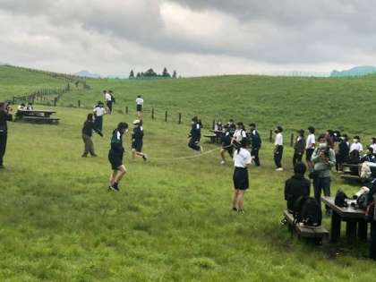 ハイキングが予定より早く終わったので、自由活動の時間をとりました。大縄跳をしたり、お喋りをしたりと自由時間を楽しんでいます。