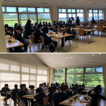 緑がいっぱいの景色を見ながら、食事もすすみます。