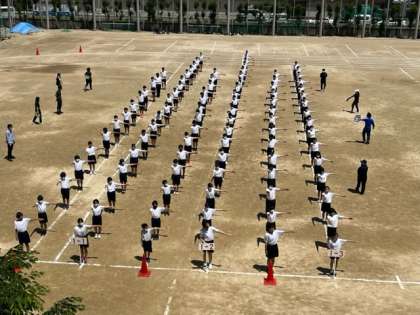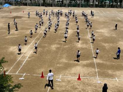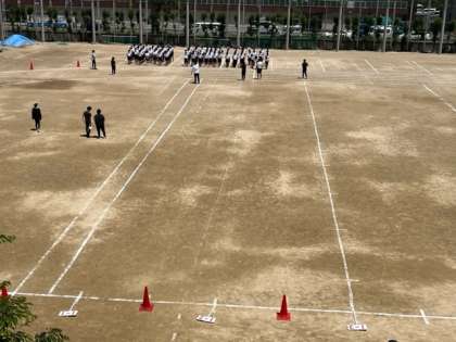 1年生は初めての体育大会です。入場の仕方、整列の仕方などを入念に確認しています。
