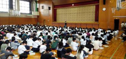 本日は1限に生徒総会が体育館で行われました。各種委員会、四者活動の代表者が今年度の活動方針と内容を報告しました。