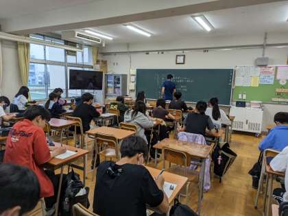 3年生は今日は時差登校して、3日間の振り返りをしています。今は作文の時間です。
