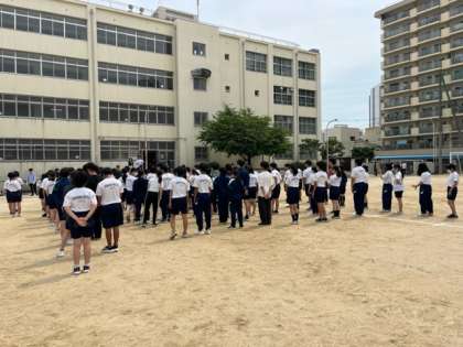 明日の体育大会に向けて、専門委員会の生徒が準備をしてくれています。