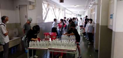 本日5、6限目に防災訓練に取り組みました。はじめに講話を聞き、その後各学年ごとに分かれて様々な体験を行いました。2年生はホース搬送、延長訓練と初期消火訓練(バケツリレー)をしました。もしもの時に少しでも力になれるようにがんばっていました。