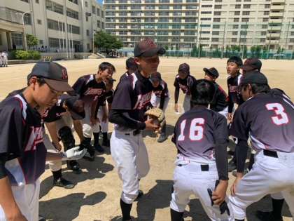 今日は予選で大阪市立住吉第一中学校と試合し、タイブレークを制し4対3で勝利することができました。