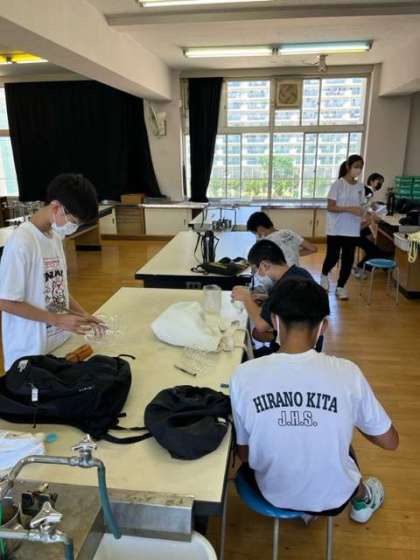 生徒たちで作ったプランクトンネットを使って平野川で微生物を採取、観察ました!